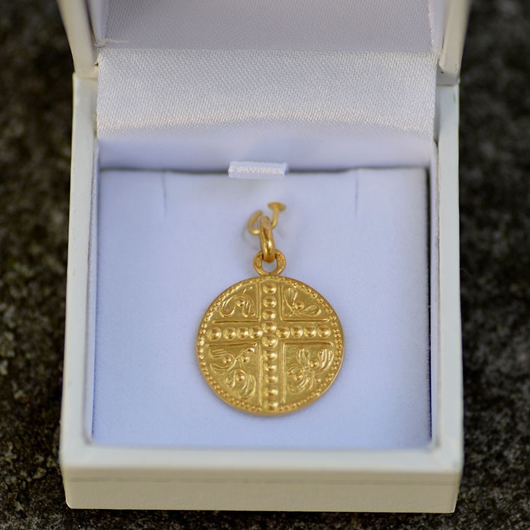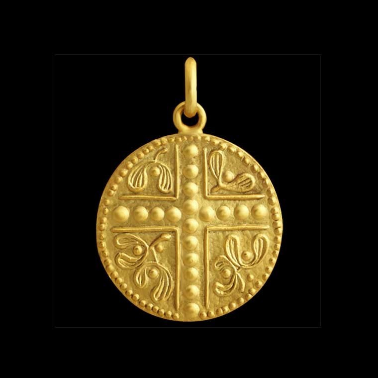 18k Gold Cross Medallion Pendant - Cross with mistletoe leaves 1