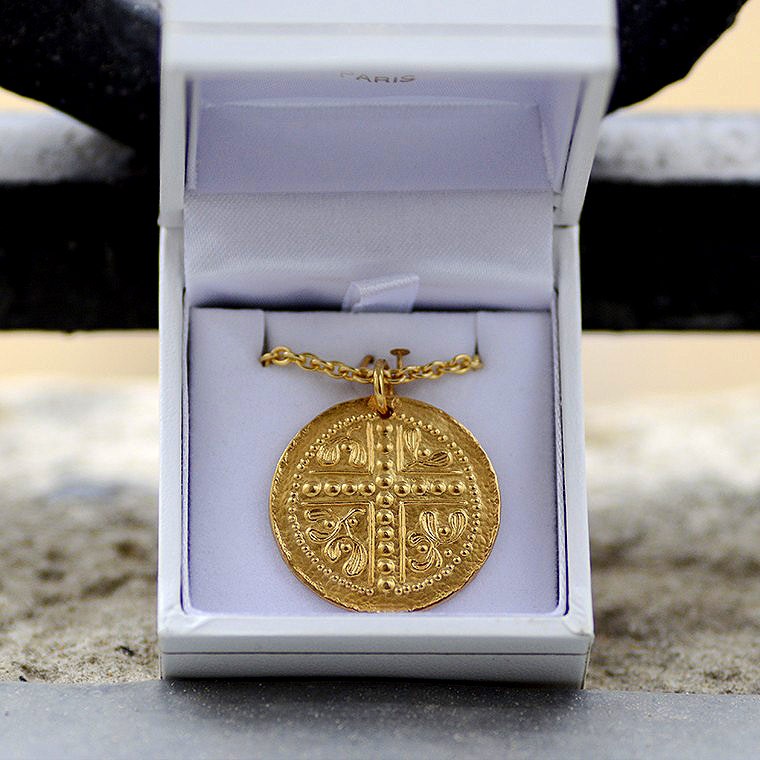 18k Gold Cross Medallion Pendant - Cross with mistletoe leaves 2