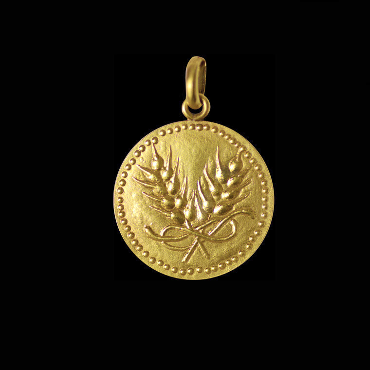 18k Gold Medallion Pendant:"Interlaced ear of wheat 2".