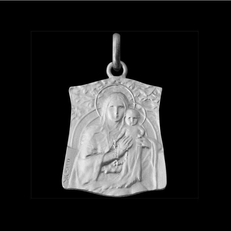 925 Sterling silver Virgin and Child with the Rosary Medal Necklace .