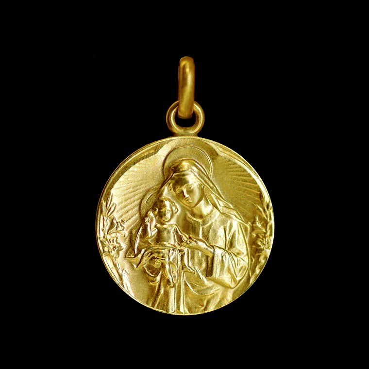 18k gold "Virgin and child with a Lily" Medallion.